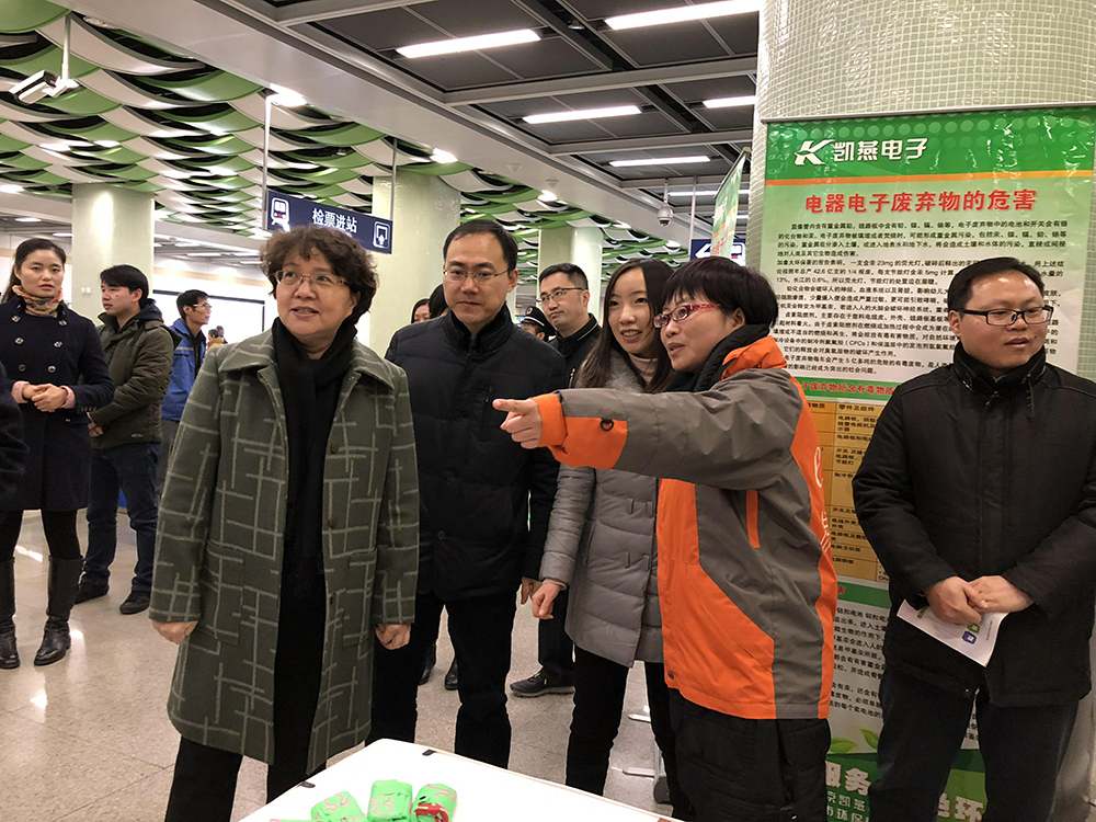 2017年12月17日,一場向公眾宣傳電子廢物回收處理的“環(huán)保進地鐵”活動,在江蘇南京地鐵十號線綠博園環(huán)保車站舉行?;顒蝇F(xiàn)場,主辦方在地鐵站內(nèi)展示了大、中、小學(xué)生及電子廢物回收處置公司制作的電子廢物創(chuàng)意設(shè)計作品、電子廢物規(guī)范化處置流程,并開展了環(huán)保小課堂廢舊光盤重復(fù)利用小手工等活動。