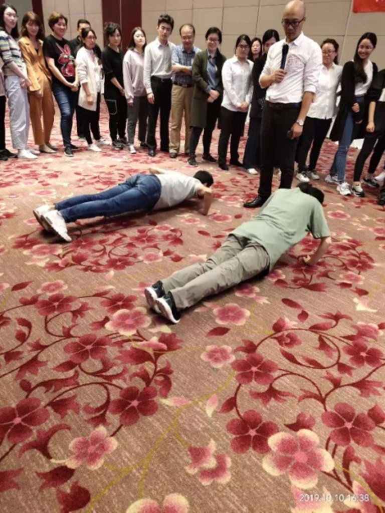 經(jīng)過了動(dòng)腦,接著就是動(dòng)手實(shí)踐了,報(bào)數(shù),很簡(jiǎn)單的游戲,不是報(bào)完就結(jié)束么,首次報(bào)數(shù)時(shí)間26秒02,然后呢,主持人就瘋了,要我們7秒,EMMM,你是主持人,你最大,然后我們就開始了,可是很悲劇的,我們的領(lǐng)導(dǎo)者就被我們的不達(dá)標(biāo)瘋狂買單了,俯臥撐5個(gè)、10個(gè)、20個(gè)、40個(gè)、60個(gè)……,恩,有領(lǐng)導(dǎo)者也不一定成功對(duì)吧,實(shí)際上看著他們汗流浹背,女孩子小胳膊直顫,內(nèi)心是很煎熬的。